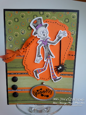 I've been just itching to color up Mr. Bones and had the amazing opportunity to color him up at the same table as my fellow Meljen's teamie, Mel A! We got together for a girls craft retreat on the Pacific Coast this weekend and it was so much fun!